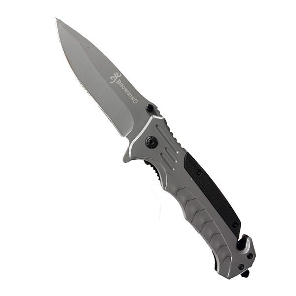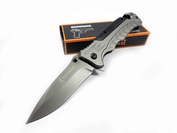 - رنگ و طراحی: تیغه سیاه مات با لوگوی براونینگ، دسته خاکستری تاکتیکال، مناسب سبک نظامی